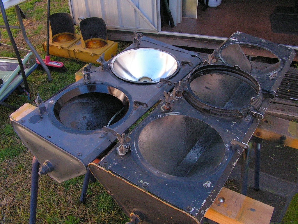 'tin' signal. The cut-down one on the left provided parts for the one on the
