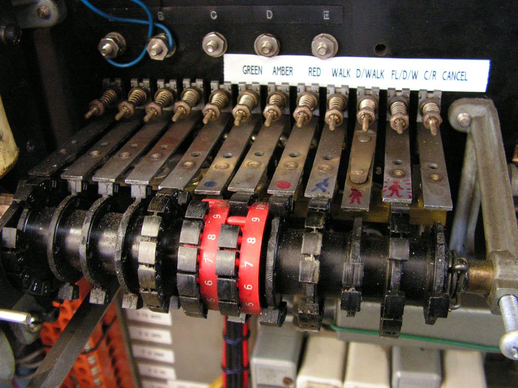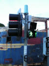 signal. An ATS pedestrian signal (red man / green man type) is behind it.