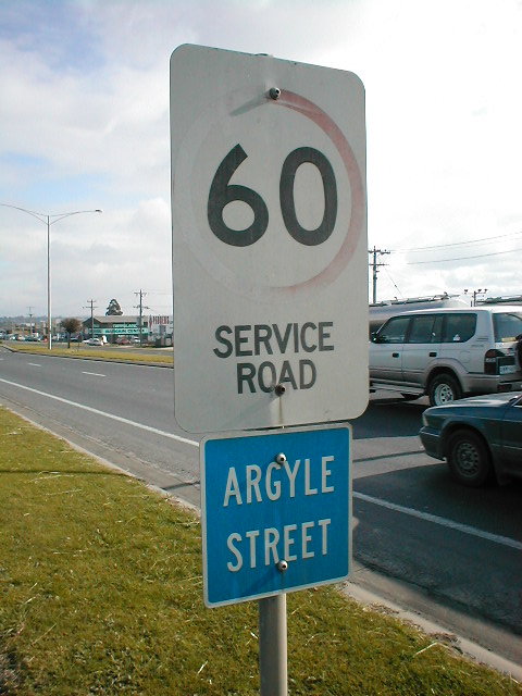 Similar to above, but using a separate "SERVICE ROAD" plate under a