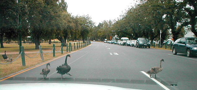 Between the Ducks Crossing sign at Albert Park